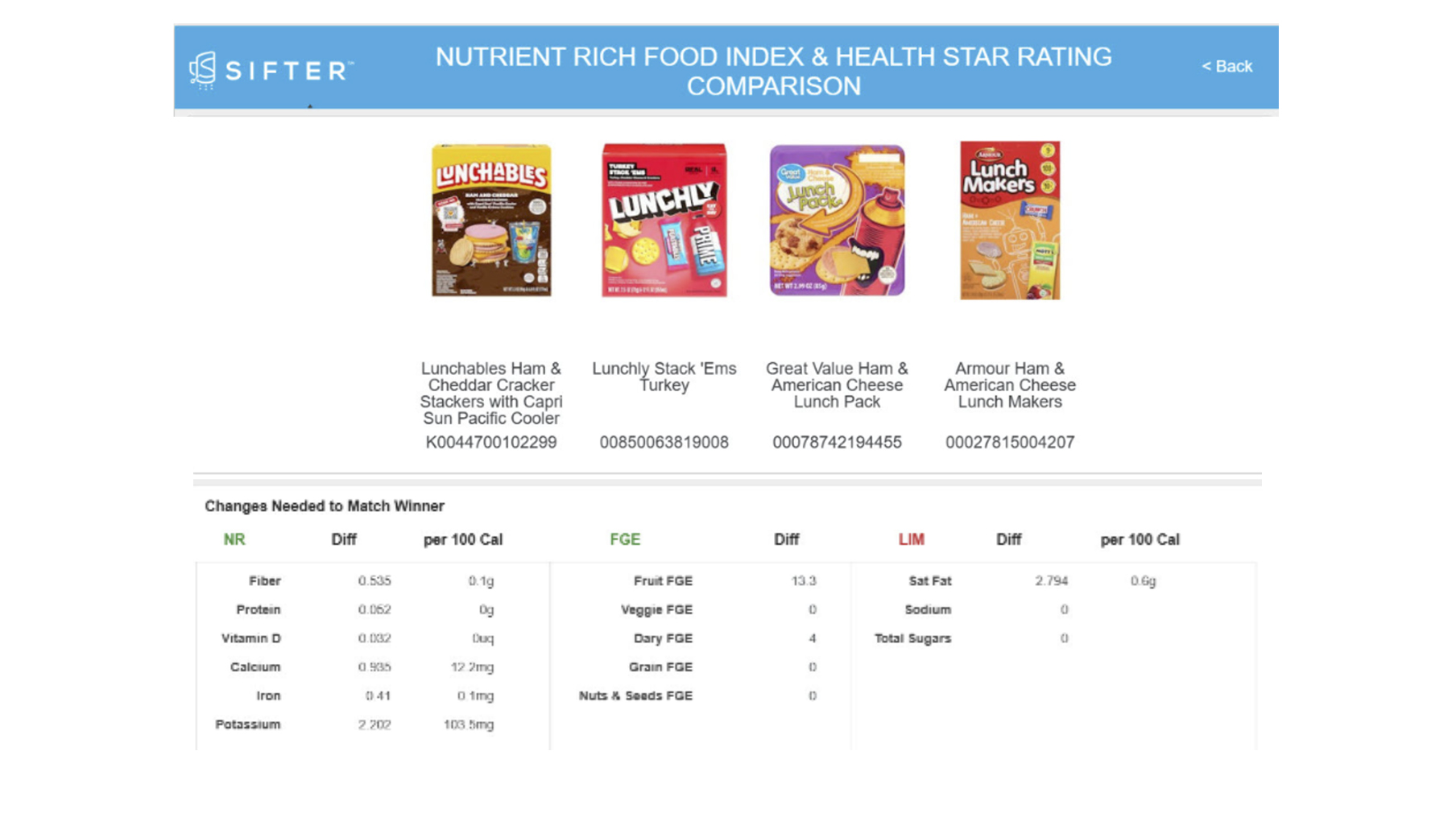 The advanced SifterLabs platform delivers accurate dietary attribution, nutrient density scoring, and competitive benchmarking—at enterprise scale.